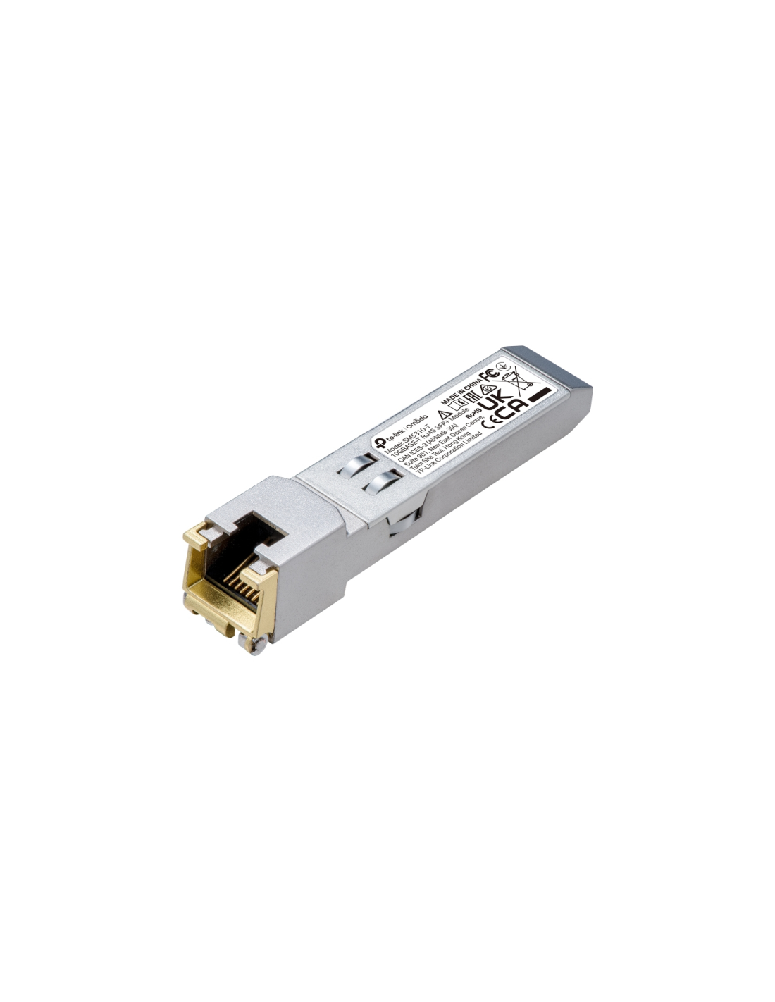 TP-Link Omada SM5310-T. Tipo de transceptor SFP: Cobre, Rango máximo de transferencia de datos: 10300 Mbit/s, Tipo de interfaz: RJ-45. Color del producto: Plata, Material de la carcasa: Metal, Factor de forma: SFP+. Voltaje de entrada: 3.3 V. Certificados de conformidad: CE, Comisión Federal de Comunicaciones (FCC) de Estados Unidos, RoHS. Ancho: 67,4 mm, Profundidad: 13,8 mm, Altura: 13,8 mm