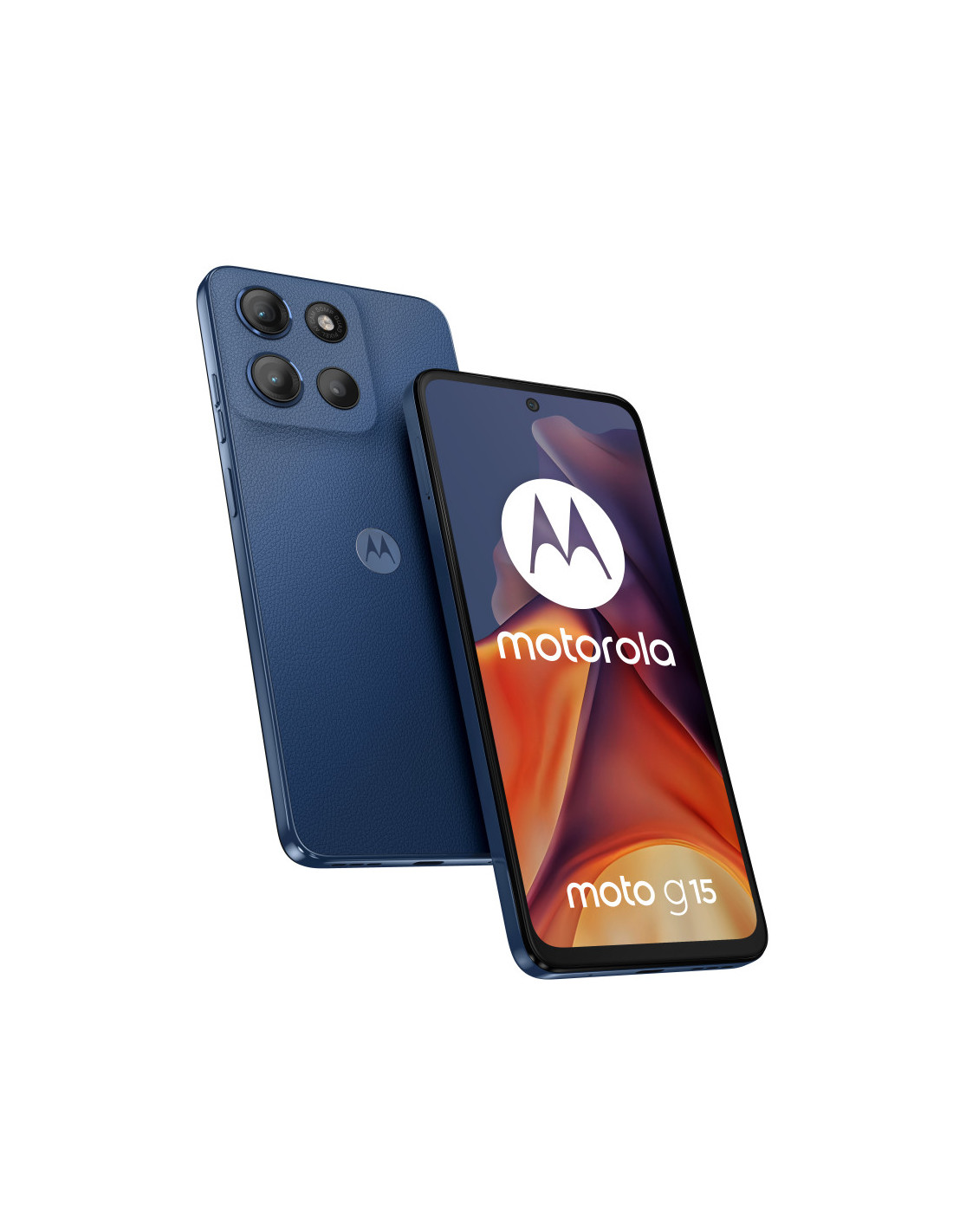 El moto g15 te lleva el cine a tus manos. Ve tus series y películas favoritas cobrar vida en una pantalla Full HD+ supernítida y brillante de 6,72”, incluso a plena luz del día. Déjate envolver por el sonido de unos altavoces estéreo potentes con refuerzo de graves y Dolby Atmos®. Captura las fotos más bonitas y detalladas con el sistema de cámaras de 50 MP(1) y deshazte de todas esas rayas molestas que aparecen con las fuentes de luz artificial. Recarga rápidamente la batería con la carga TurboPower™ (2) y usa el smartphone durante más tiempo gracias a sus 5200 mAh. Disfruta de un aspecto y una sensación de calidad con su diseño en cuero vegano, repelente al agua(3) y con cristal Corning® Gorilla® Glass 3. Y por si fuera poco, deléitate con un rendimiento rápido y muchísimo espacio para tu contenido más divertido. Da luz y color a tus días con el moto g15.