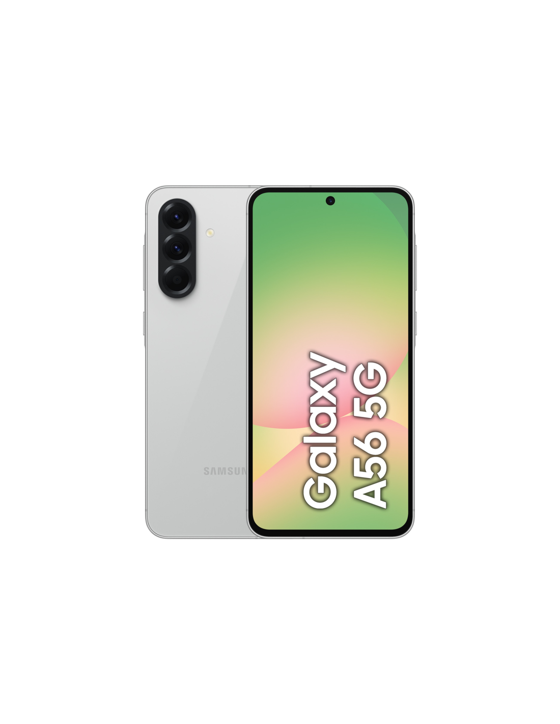 Samsung Galaxy A56 5G. Diagonal de la pantalla: 17 cm (6.7"), Resolución de la pantalla: 1080 x 2340 Pixeles. Frecuencia del procesador: 2,6 GHz, Familia de procesador: Samsung Exynos, Modelo del procesador: 1580. Capacidad de RAM: 8 GB, Capacidad de almacenamiento interno: 256 GB. Resolución de la cámara trasera (numérica): 50 MP, Tipo de cámara trasera: Triple cámara. Capacidad de la tarjeta SIM: SIM doble. Sistema operativo instalado: Android 15. Capacidad de batería: 5000 mAh. Color del producto: Gris c