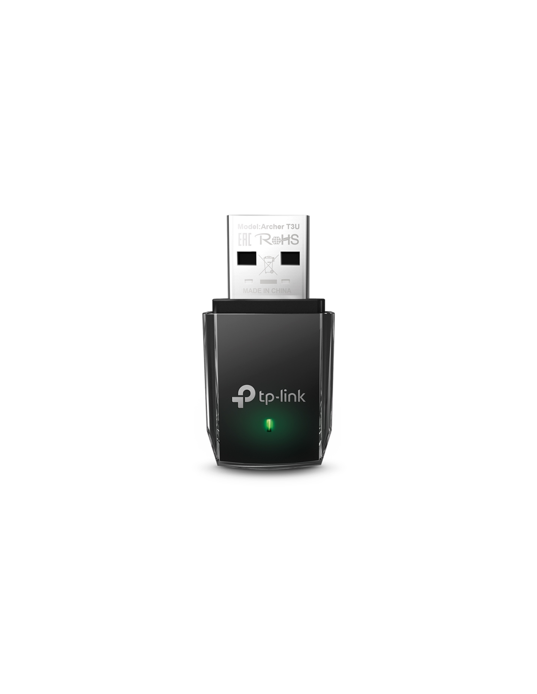 TP-Link Archer T3U. Tecnología de conectividad: Inalámbrico, Interfaz de host: USB, Interfaz: WLAN. Rango máximo de transferencia de datos: 1267 Mbit/s, Estándar Wi-Fi: Wi-Fi 5 (802.11ac), Banda Wi-Fi: Doble banda (2,4 GHz / 5 GHz). USB con suministro de corriente. Color del producto: Negro