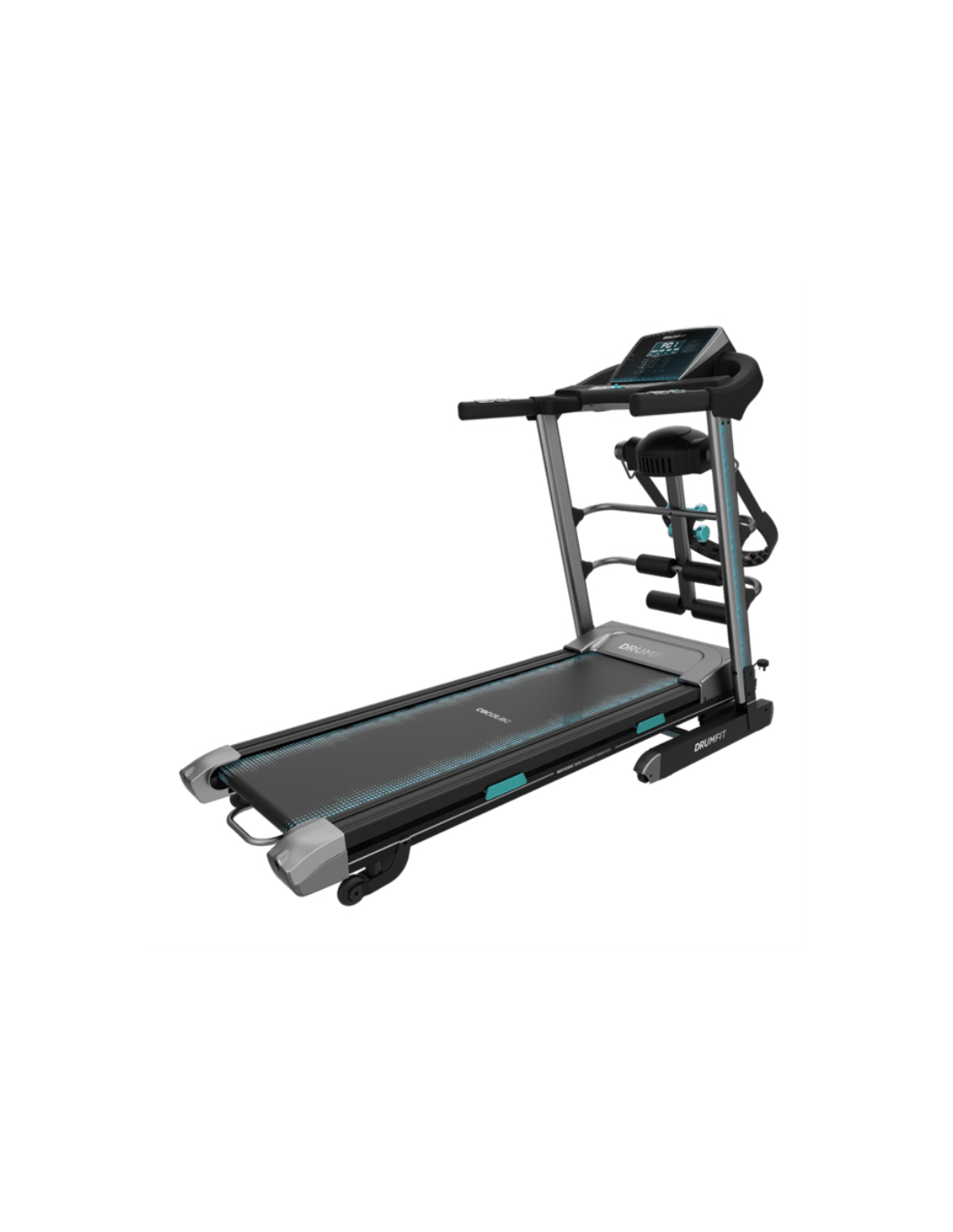 Accesorios: Cinturon de masaje vibrador FatSlim, set de mancuernas, portabotellas, conector de carga USB, altavoces y soporte para tablet.