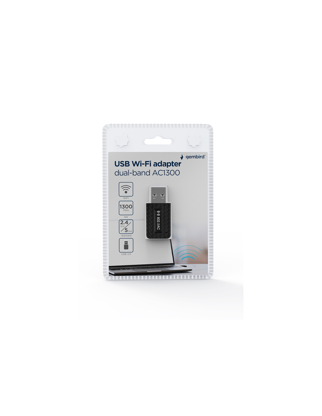 Gembird AC1300. Tecnología de conectividad: Inalámbrico, Interfaz de host: USB, Interfaz: WLAN. Rango máximo de transferencia de datos: 867 Mbit/s, Estándar Wi-Fi: Wi-Fi 5 (802.11ac), Banda Wi-Fi: Doble banda (2,4 GHz / 5 GHz). Tipo de antena: 2x2, Color del producto: Negro