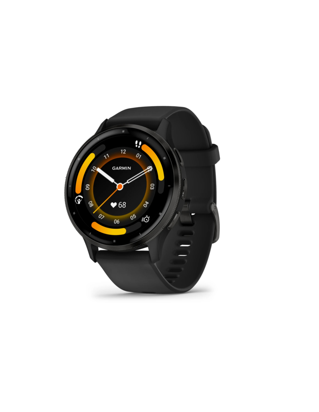 Garmin Venu 3. Diagonal de la pantalla: 3,56 cm (1.4"), Tecnología de visualización: AMOLED, Resolución de la pantalla: 454 x 454 Pixeles, Pantalla táctil. Wifi. GPS (satélite). Peso: 46 g. Material de la banda: Silicona, Color de banda: Negro, Gris