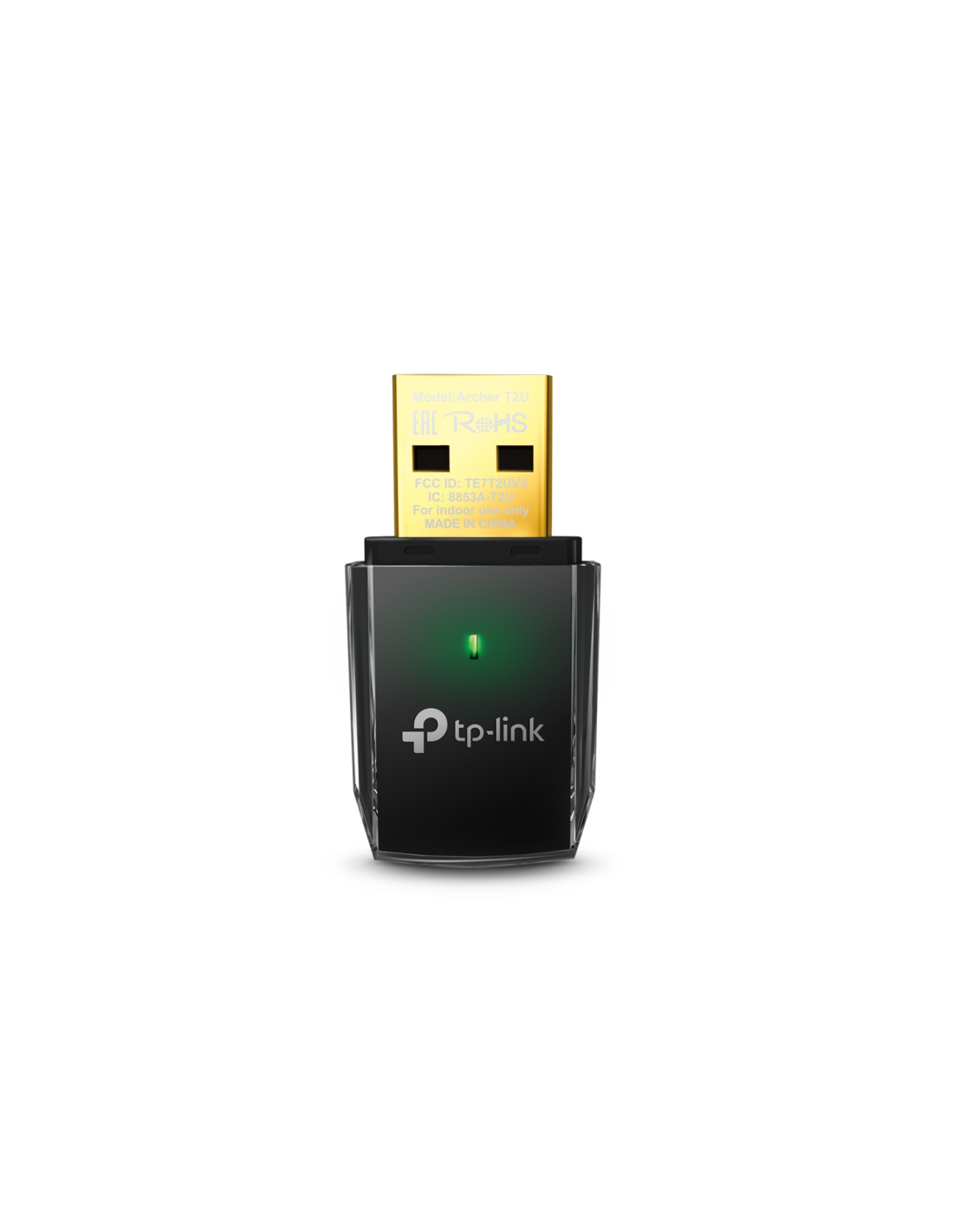 TP-Link Archer T2U. Tecnología de conectividad: Inalámbrico, Interfaz de host: USB, Interfaz: WLAN. Rango máximo de transferencia de datos: 600 Mbit/s, Estándar Wi-Fi: Wi-Fi 5 (802.11ac), Banda Wi-Fi: Doble banda (2,4 GHz / 5 GHz). Color del producto: Negro