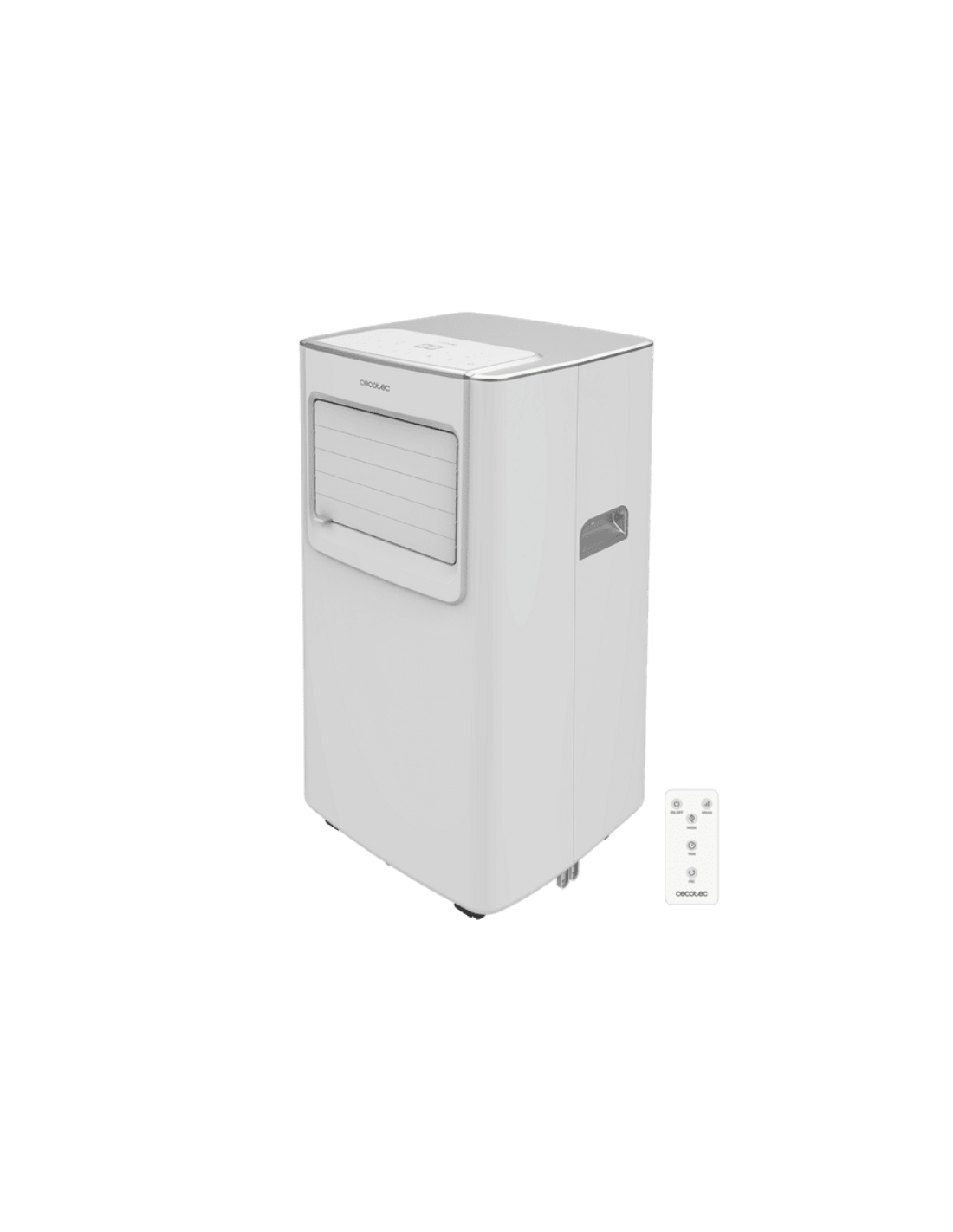 Cecotec 08170. Tipo: Climatizador móvil "Monobloc", Funciones de aire acondicionado: Enfriamiento, Deshumedecer, Ventilador, Capacidad de enfriamiento (max): 7000 BTU/h. Clase de eficiencia energética (refrigeración): A, Consumo energético por hora (refrigeración): 0,8 kWh, Escala de eficiencia energética: A+++ a D. Color del producto: Blanco, Tipo de visualizador: LED. Ancho: 330 mm, Profundidad: 325 mm, Altura: 675 mm