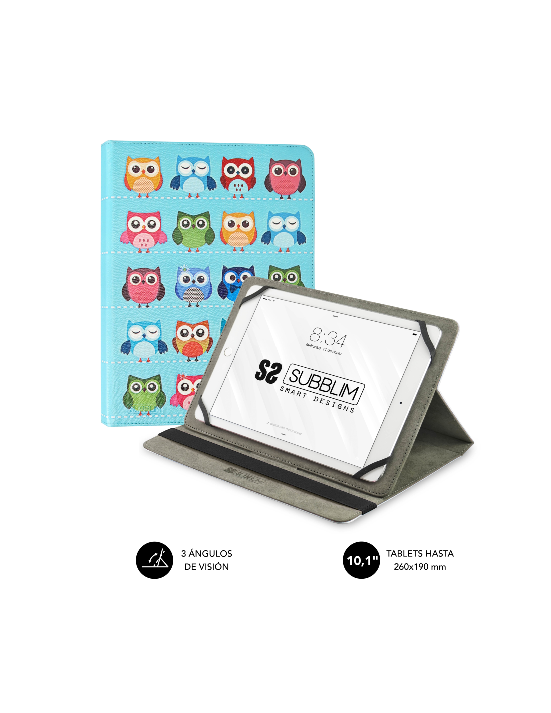 SUBBLIM Funda Tablet Universal TRENDY CASE OWLS 10.1". Tipo de funda: Folio, Marca compatible: Cualquier marca, Compatibilidad: Universal. Compatible con todas las Tablet del mercado de hasta 10.1", Tamaño máximo de pantalla: 25,6 cm (10.1"), Número de modos de soporte: 3. Peso: 356 g