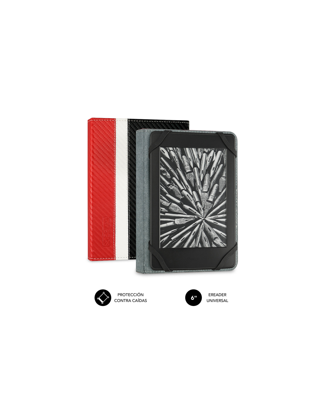 SUBBLIM Funda Libro Electrónico Clever Ebook Case 6" Red. Tipo de funda: Folio, Color del producto: Negro, Rojo, Blanco, Marca compatible: Cualquier marca. Ancho: 131 mm, Profundidad: 18 mm, Altura: 176 mm. Ancho del paquete: 135 mm, Profundidad del paquete: 20 mm, Altura del paquete: 210 mm