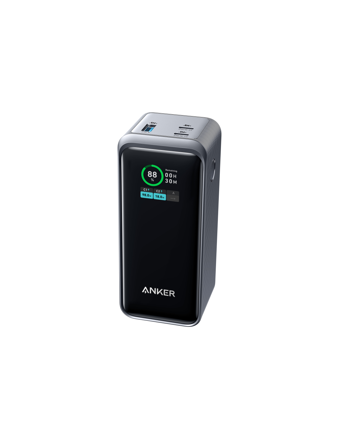 Anker Prime. Capacidad de batería: 20000 mAh. USB A número de salidas: 1, Número de puertos USB Tipo C: 2. Potencia total de salida: 200 W. Color del producto: Negro