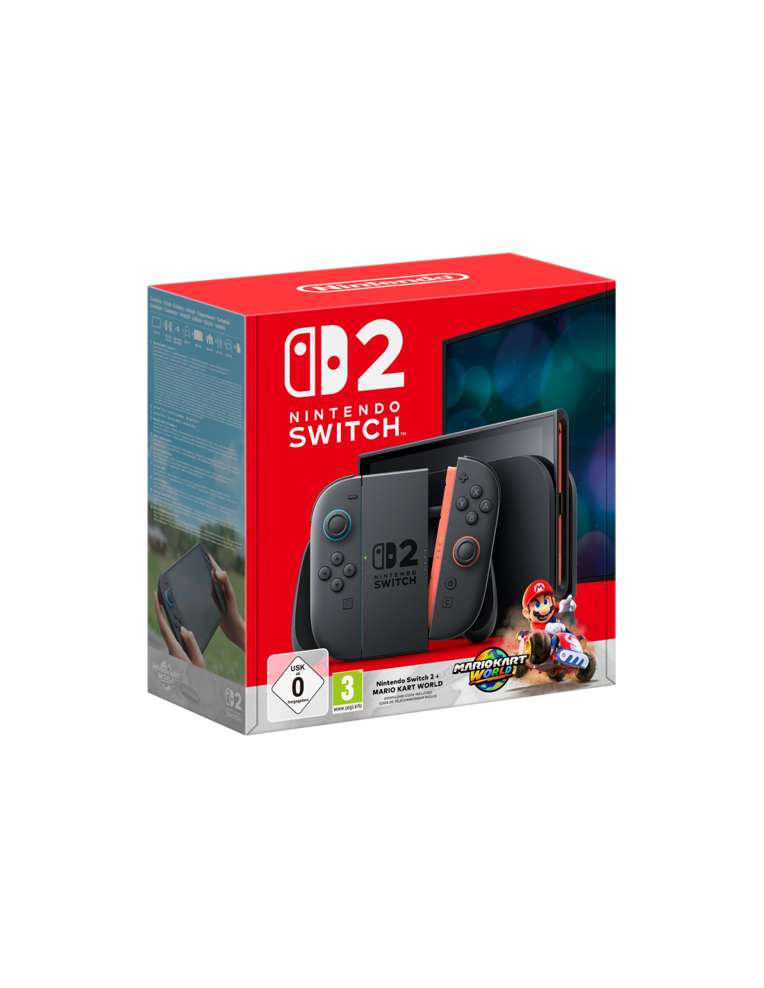 Nintendo Switch 2 + Mario Kart World. Plataforma: Nintendo Switch 2. Color del producto: Negro, Tecnología de control para juegos: Analógico/Digital, Botones de función control para gaming: Cruceta, Botón de inicio, Botón menú, Botón de encendido. Pantalla: LCD, Diagonal de la pantalla: 20,1 cm (7.9"), Resolución de la pantalla: 1920 x 1080 Pixeles. Tipo de almacenamiento: Flash, Capacidad de memoria interna: 256 GB, Tarjetas de memoria compatibles: MicroSD (TransFlash), MicroSDXC. Frecuencia de banda: 2.4
