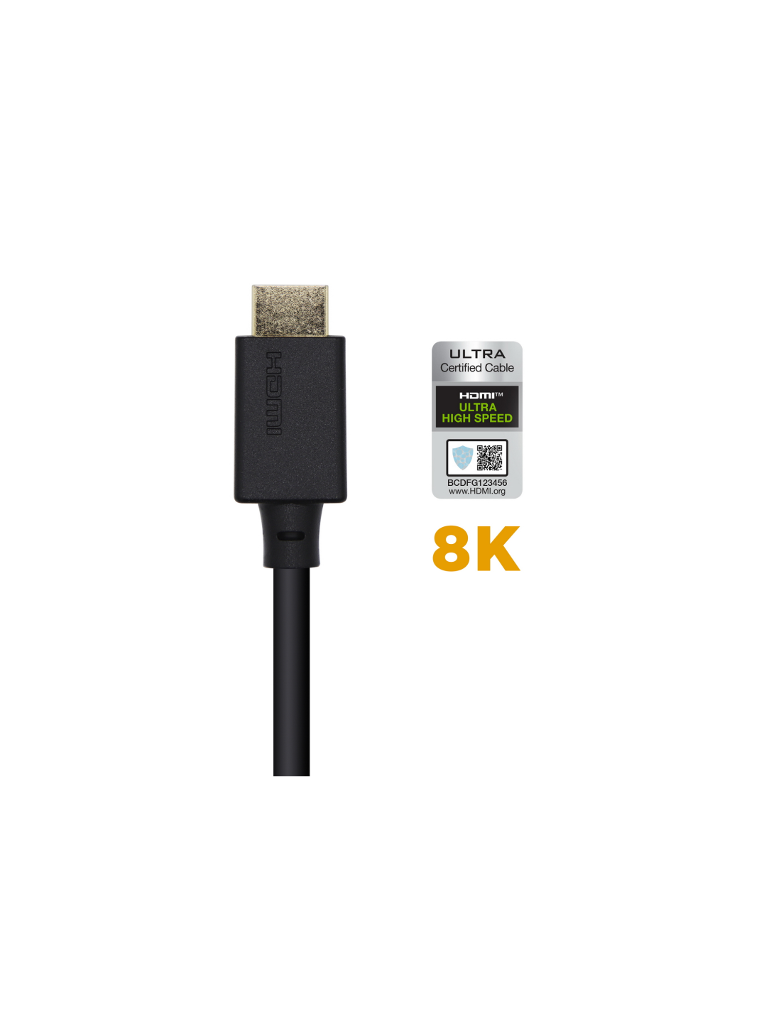 Cable HDMI V2.1 ultra alta velocidad con Ethernet, con conector tipo A macho en ambos extremos.