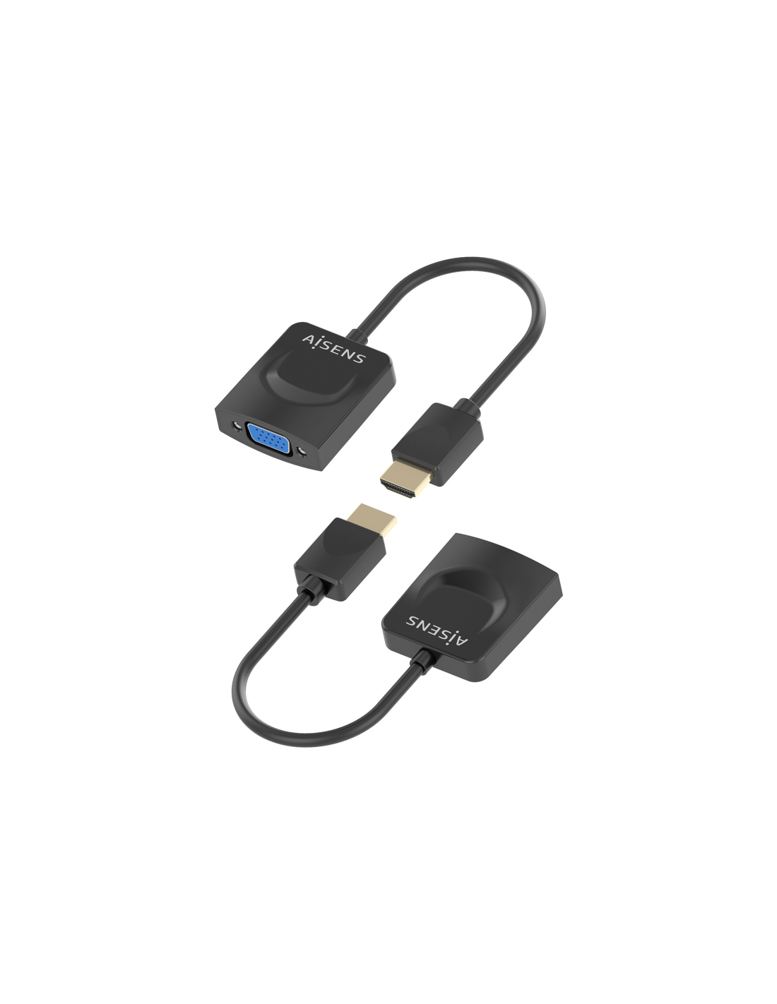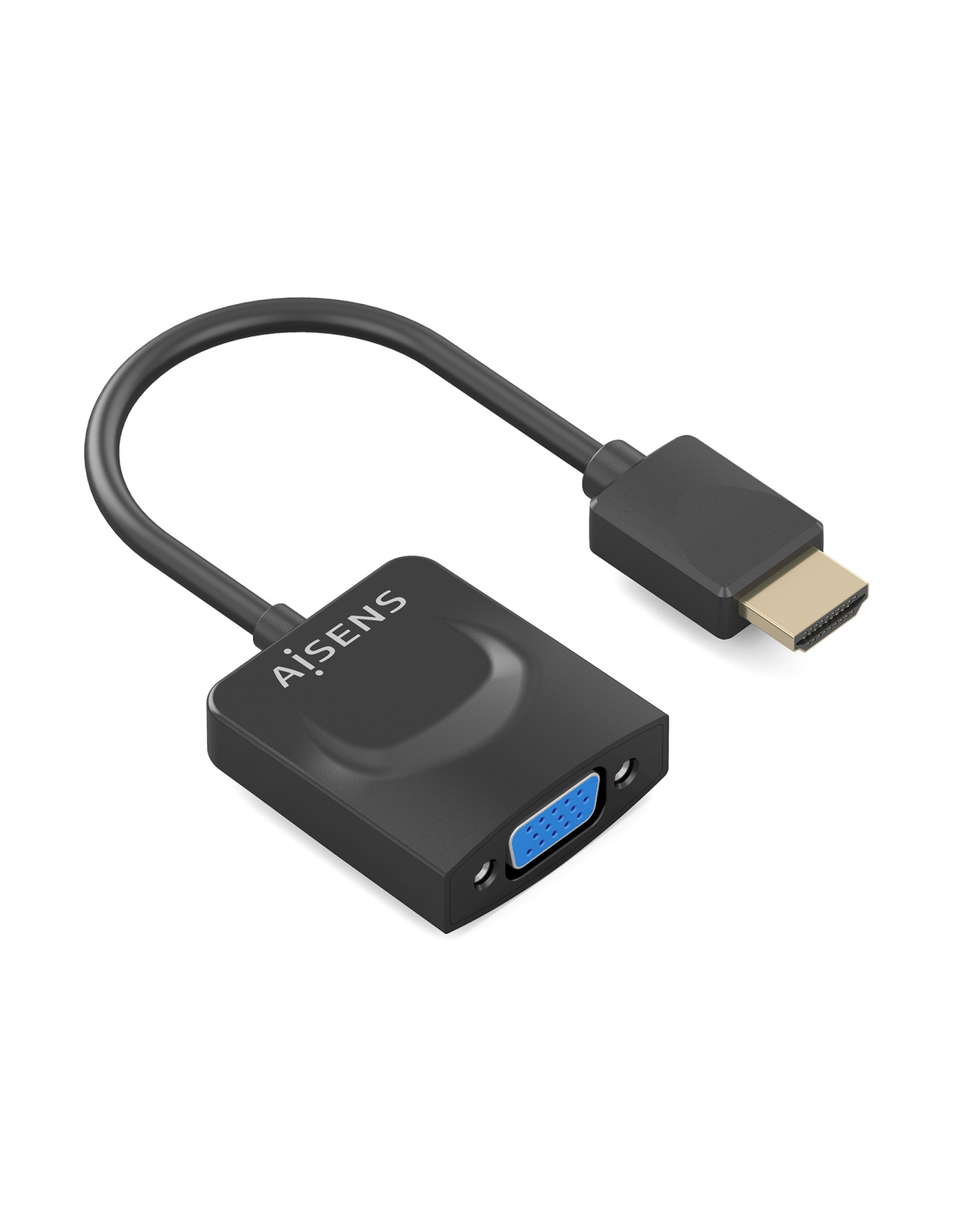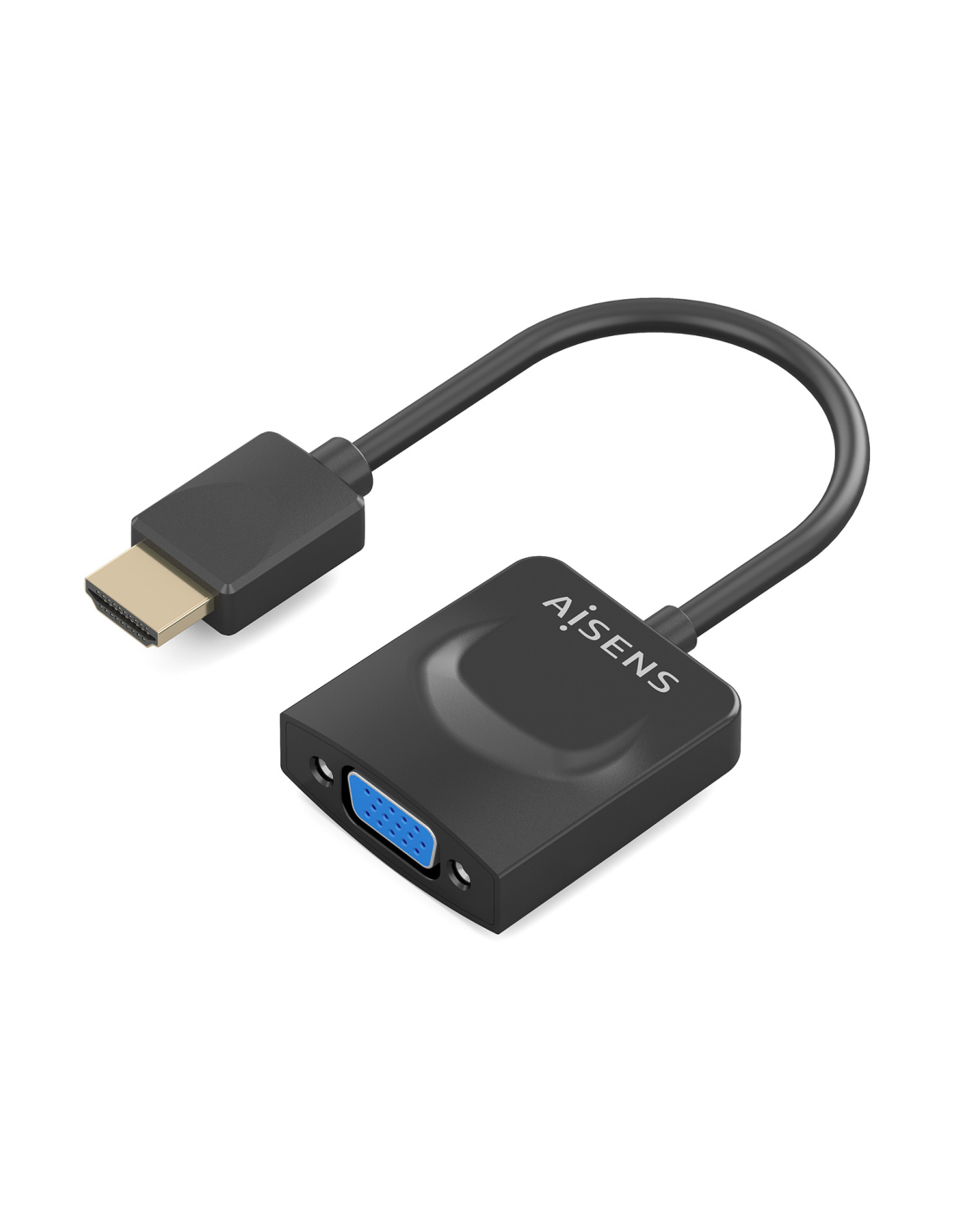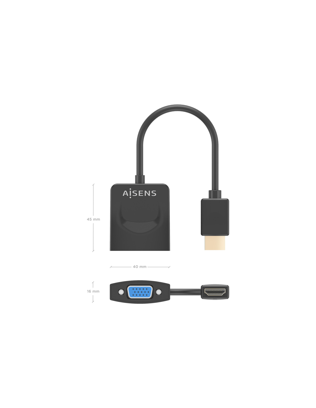 AISENS Conversor HDMI a SVGA, HDMI A/M-SVGA/H, Negro, 15?m. Longitud de cable: 0,15 m, Conector 1: HDMI tipo A (Estándar), Conector 2: VGA (D-Sub). Certificados de conformidad: RoHS. Dimensiones del conector 1 (anchura x profundidad x altura): 40 x 45 x 16 mm. Ancho del paquete: 160 mm, Profundidad del paquete: 120 mm, Altura del paquete: 15 mm. Cantidad por paquete: 1 pieza(s)