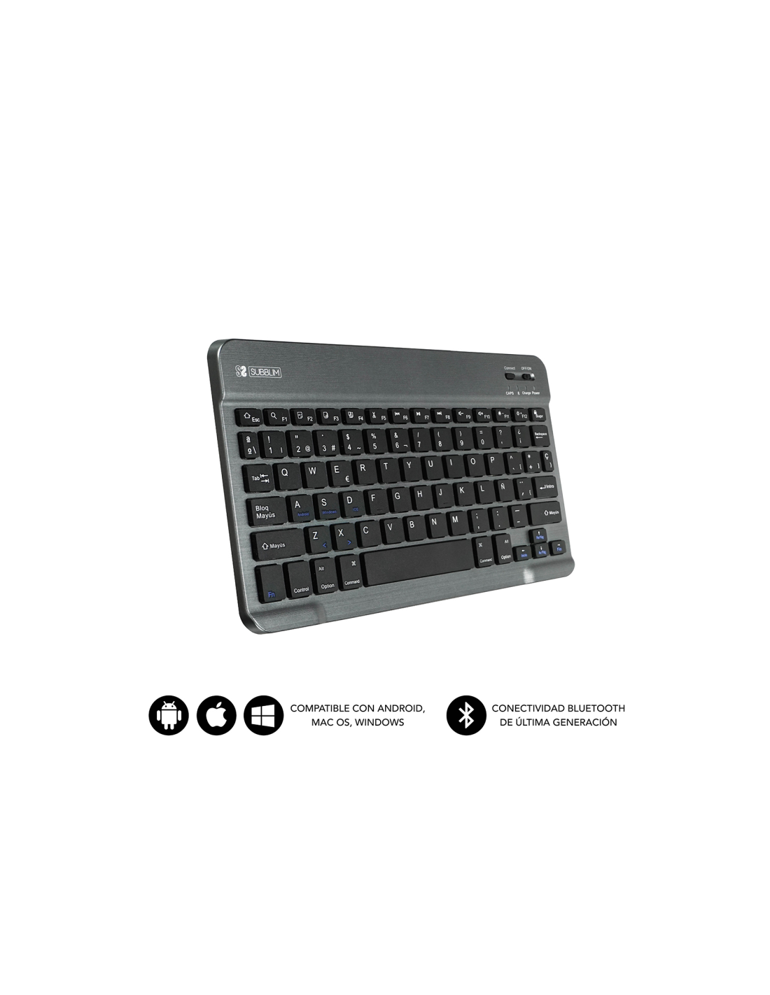 SUBBLIM Teclado Bluetooth Smart BT Keyboard Grey. Diseño de teclado: QWERTY, Idioma del teclado: Español, Vida útil de teclas: 5 millón de caracteres. Marca compatible: Cualquier marca, Compatibilidad: Compatible con todos los dispositivos con conexión Bluetooth como Tablets, Ordenadores,..., Color del producto: Negro, Gris. Tecnología de conectividad: Inalámbrico, Interfaz del dispositivo: Bluetooth, Versión de Bluetooth: 3.0+HS. Fuente de energía: Batería, Tipo de batería: Batería integrada, Tecnología de
