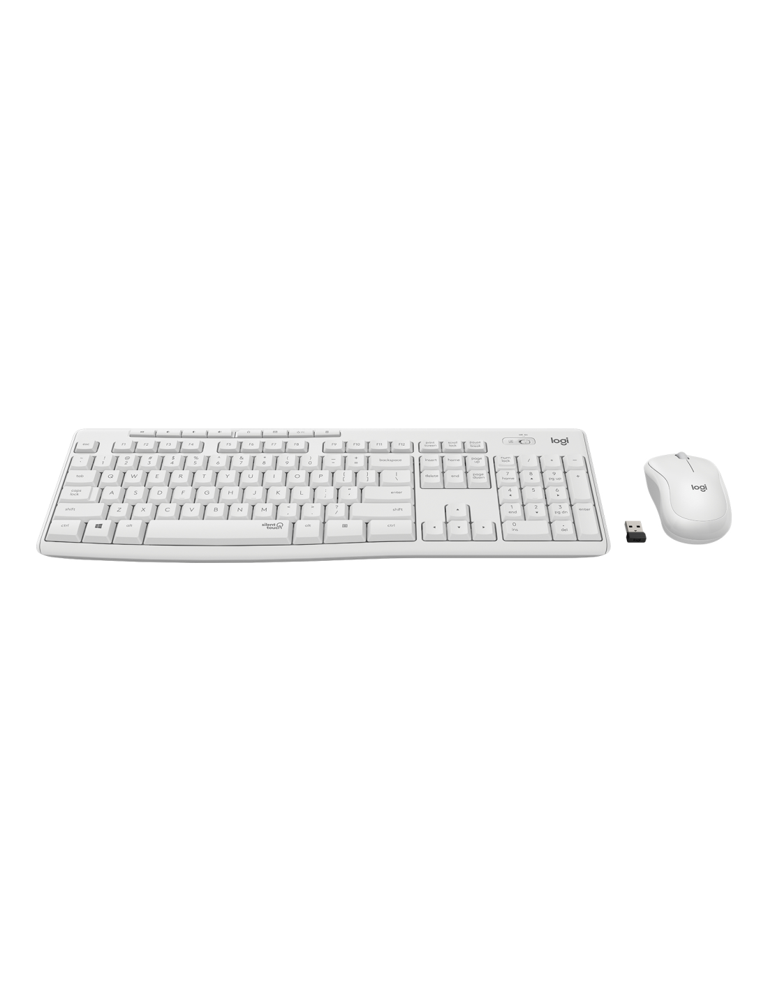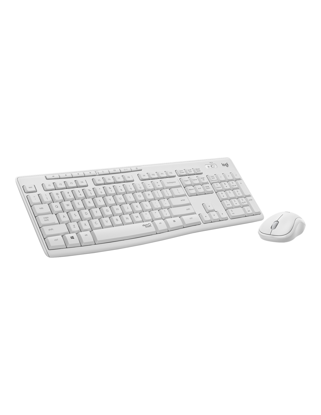 Logitech MK295 Silent. Formato del teclado: Completo (100%). Estilo de teclado: Derecho. Tecnología de conectividad: Alámbrico, Interfaz del dispositivo: RF inalámbrico, Diseño de teclado: QWERTY, Uso recomendado: Oficina. Color del producto: Blanco. Ratón incluido