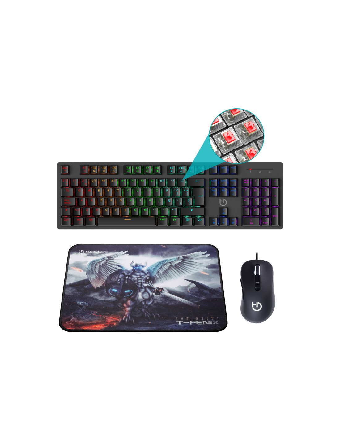 Hiditec Teclado Mecánico GK400 + Ratón Gaming Blitz + Alfombrilla T-Fenix