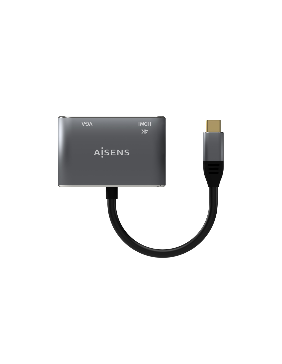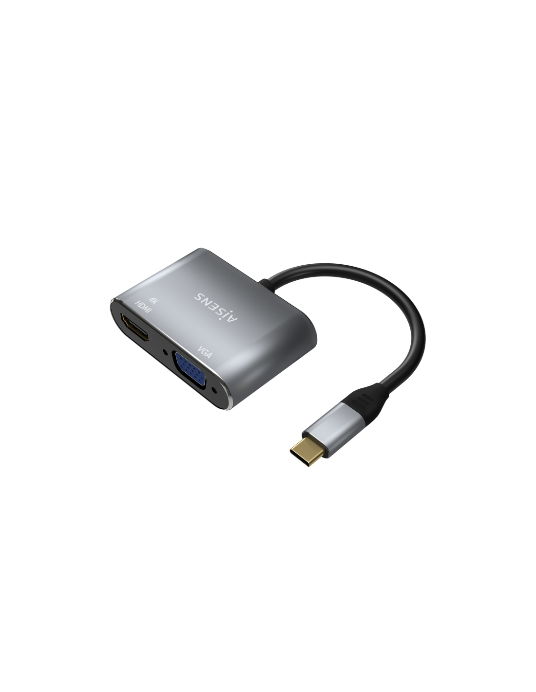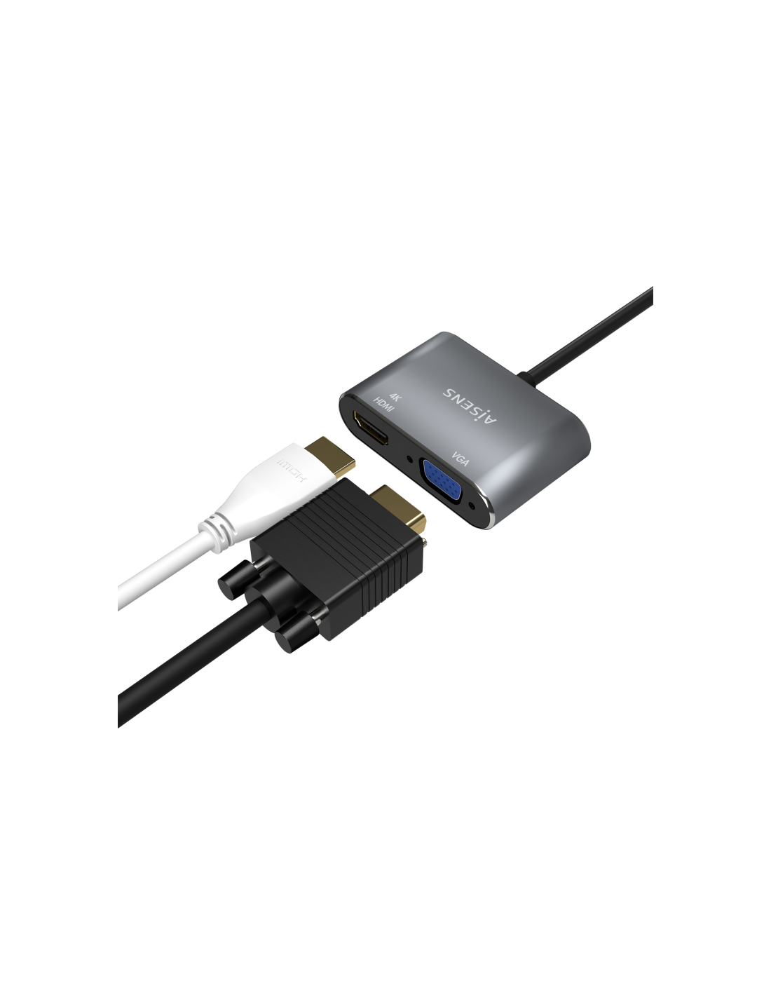 AISENS Conversor USB-C a VGA/HDMI 4K, USB-C/M-VGA/H-HDMI/H, Gris, 15CM
