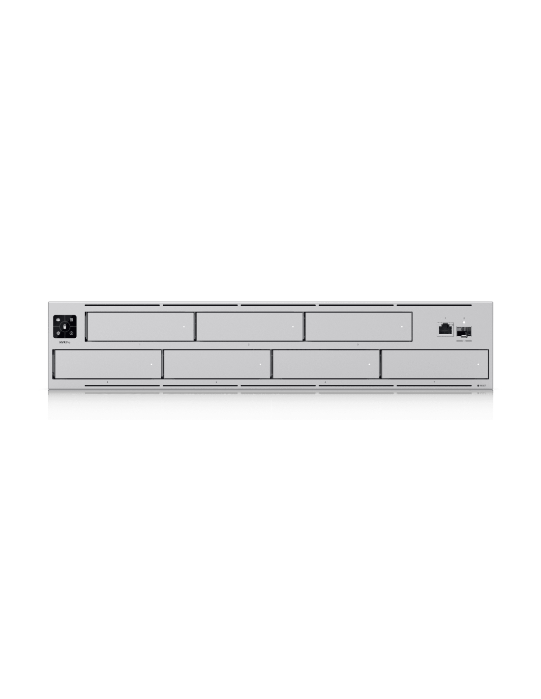 Ubiquiti UNVR-Pro. Canales de entrada de vídeo: 60 canales. Tamaño del HDD: 2.5/3.5", Niveles RAID: 1, 5, 10. Ethernet LAN, velocidad de transferencia de datos: 1000,10000 Mbit/s. Capacidad del rack: 2U, Color del producto: Gris. Diagonal de la pantalla: 3,3 cm (1.3")