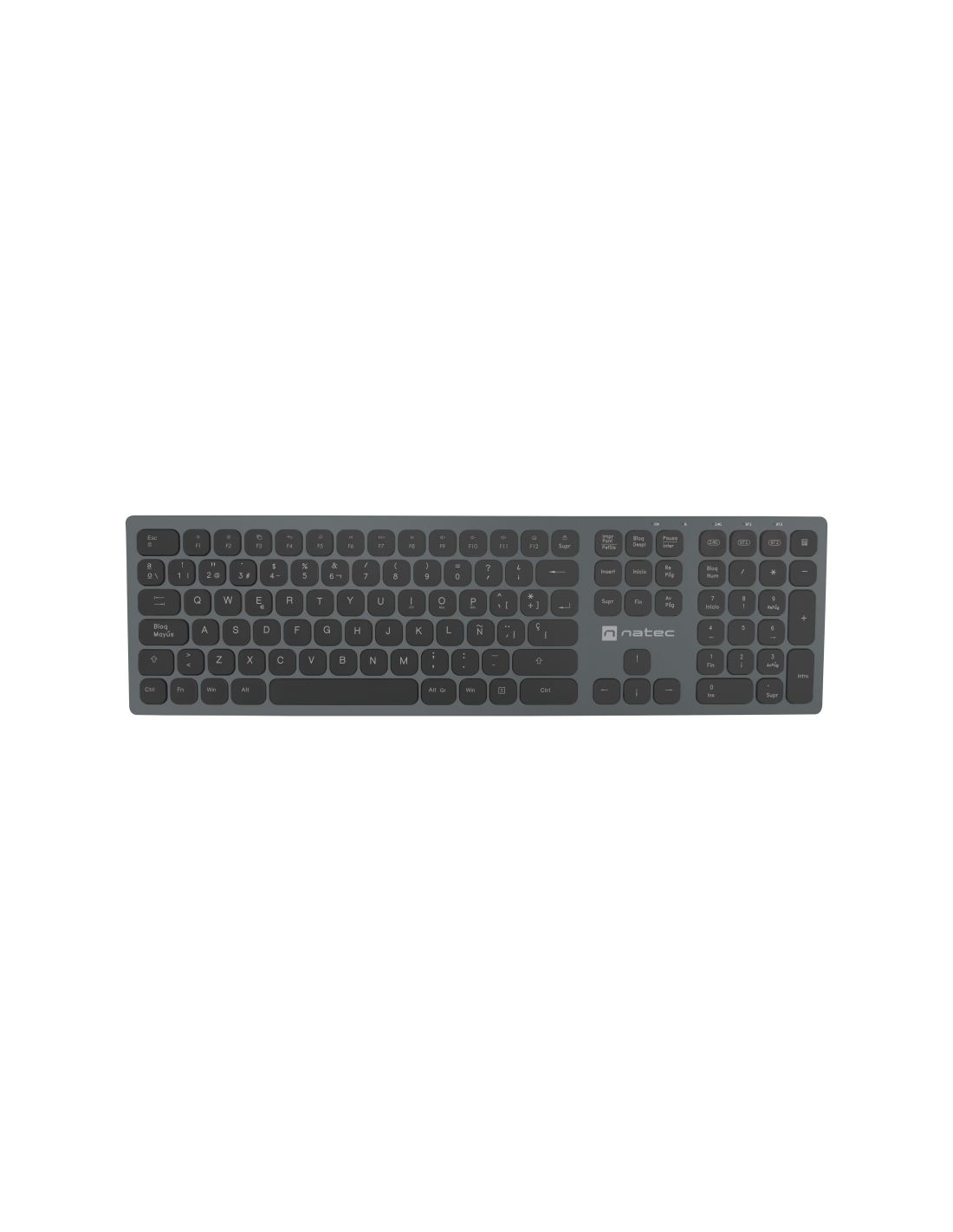 NATEC NKL-1830. Formato del teclado: Completo (100%), Tecnología de conectividad: Inalámbrico, Interfaz del dispositivo: RF Wireless + Bluetooth, Interruptor del teclado: Interruptor de membrana, Diseño de teclado: QWERTY, Teclado, cantidad de teclas: 109, Uso recomendado: Universal. Color del producto: Negro, Gris