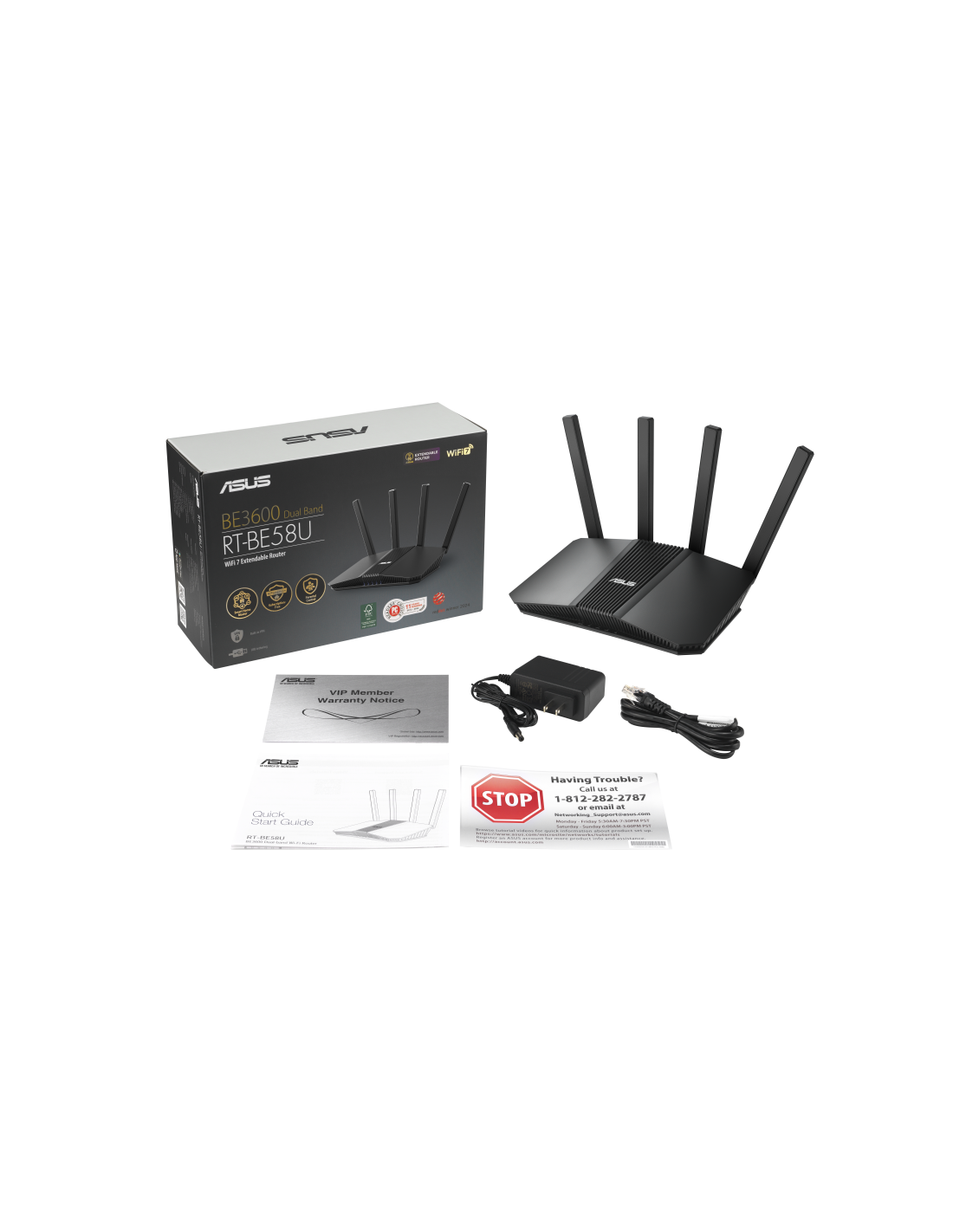 ASUS RT-BE58U V2. Tipo de conexión WAN: RJ-45. Banda Wi-Fi: Doble banda (2,4 GHz / 5 GHz), Estándar Wi-Fi: Wi-Fi 7 (802.11be), Tasa de transferencia de datos WLAN (máx.): 3600 Mbit/s. Tipo de interfaz Ethernet LAN: 2.5 Gigabit Ethernet, Ethernet LAN, velocidad de transferencia de datos: 1000,2500 Mbit/s. Tipo de producto: Router de sobremesa, Color del producto: Negro, Indicadores LED: Poder, LAN, WAN. Diseño de la antena: Externo