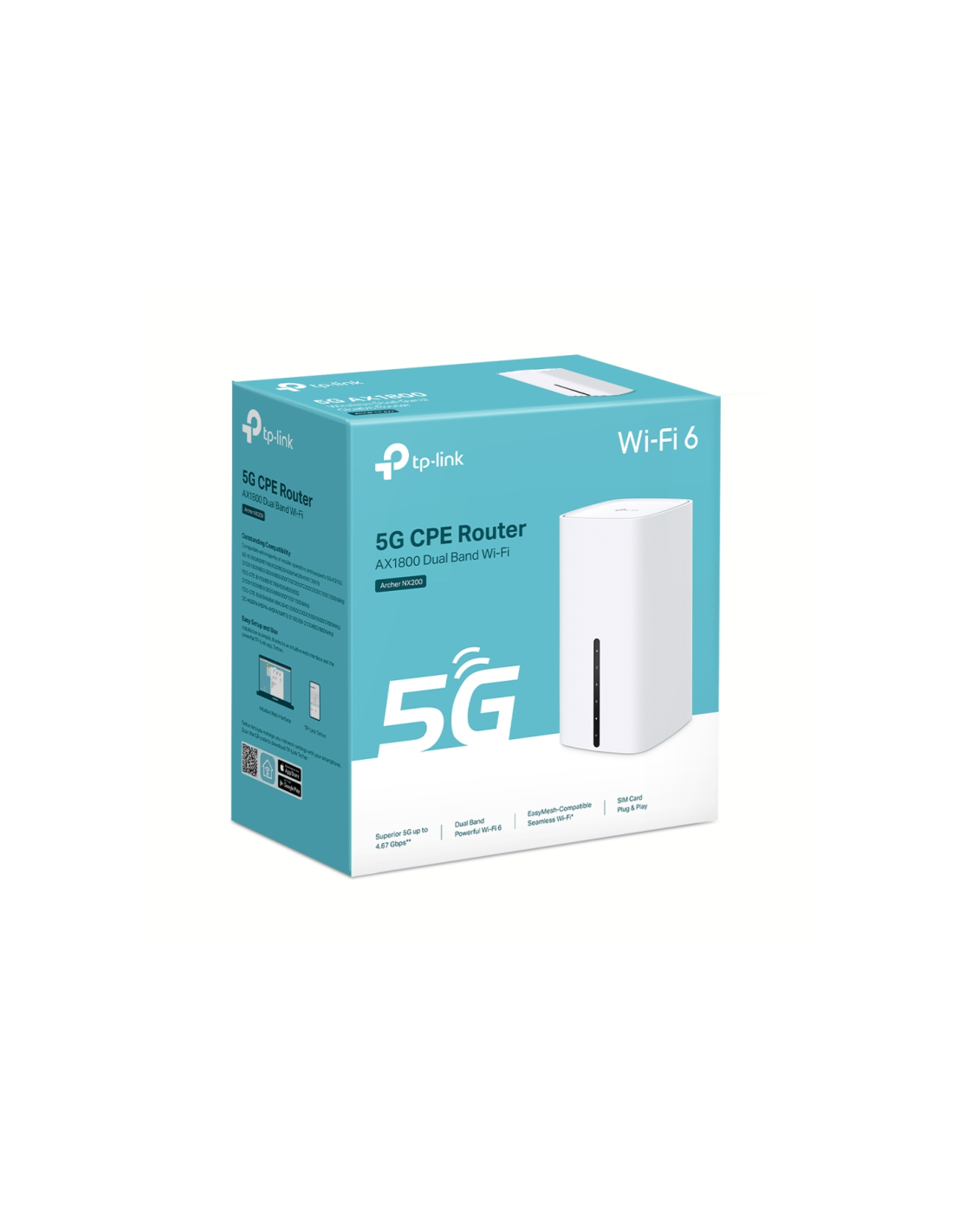 TP-Link Archer NX200. Tipo de conexión WAN: RJ-45. Banda Wi-Fi: Doble banda (2,4 GHz / 5 GHz), Estándar Wi-Fi: Wi-Fi 6 (802.11ax), Tasa de transferencia de datos WLAN (máx.): 1201 Mbit/s. Tipo de interfaz Ethernet LAN: Gigabit Ethernet, Ethernet LAN, velocidad de transferencia de datos: 10,100,1000 Mbit/s, Soporte VPN: PPTP VPN, IPSec VPN , OpenVPN. Generación de red móvil: 5G, Estándares 3G: DC-HSDPA, HSPA, HSPA+, UMTS, Estándar 4G: LTE-TDD & LTE-FDD. Algoritmos de seguridad soportados: 64-bit WEP, 128-bit