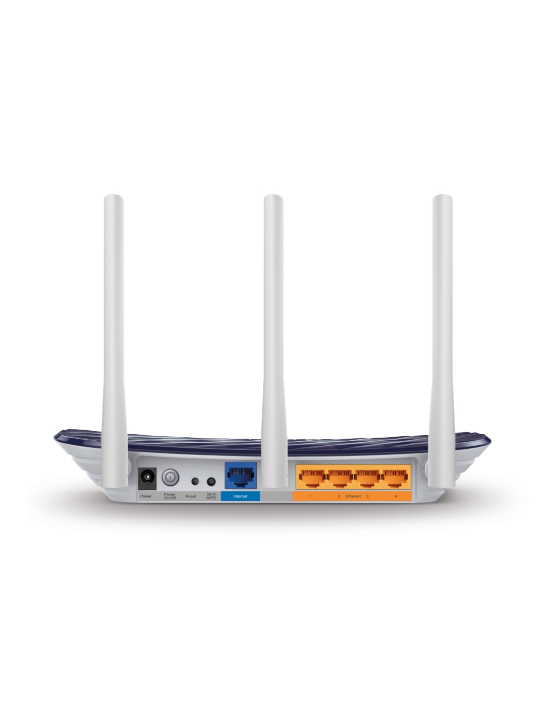 TP-Link AC750. Tipo de conexión WAN: RJ-45. Banda Wi-Fi: Doble banda (2,4 GHz / 5 GHz), Estándar Wi-Fi: Wi-Fi 5 (802.11ac), Tasa de transferencia de datos WLAN (máx.): 433 Mbit/s. Tipo de interfaz Ethernet LAN: Ethernet rápido, Ethernet LAN, velocidad de transferencia de datos: 10,100 Mbit/s, Tecnología de cableado: 10/100Base-T(X). Algoritmos de seguridad soportados: WEP, WPA, WPA-Enterprise, WPA2, WPA2-Enterprise, Seguridad con cortafuegos: SPI. Protocolos de red compatibles: IPv4, IPv6