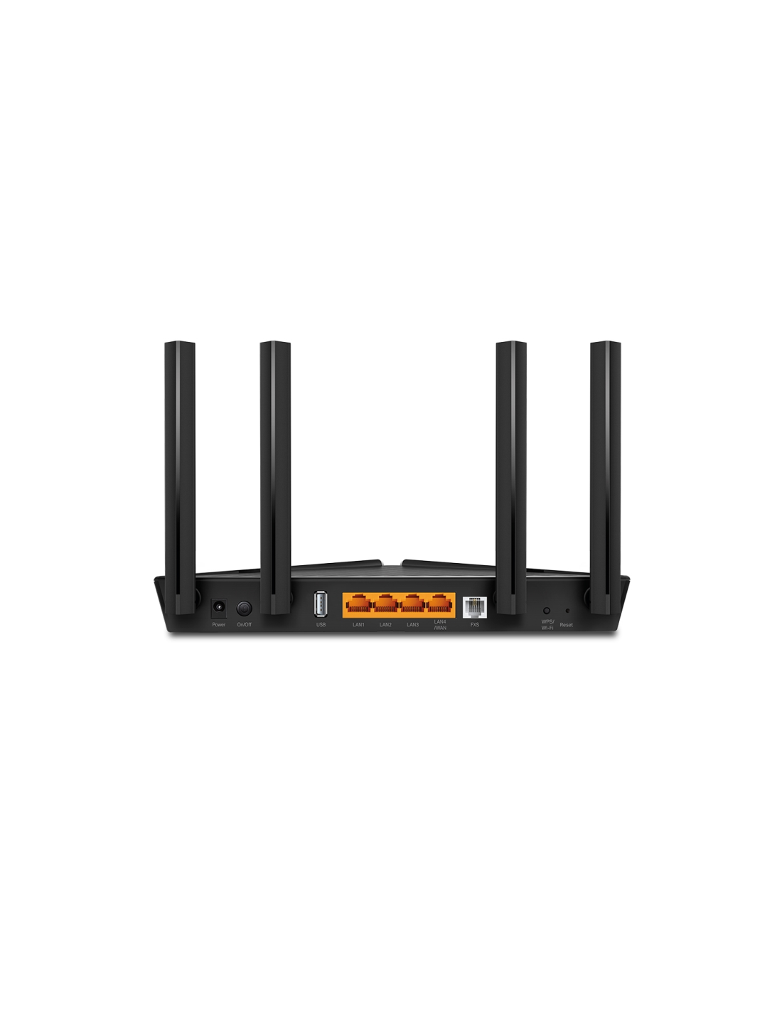 TP-Link XX230V. Tipo de conexión WAN: RJ-45. Banda Wi-Fi: Doble banda (2,4 GHz / 5 GHz), Estándar Wi-Fi: Wi-Fi 6 (802.11ax), Tasa de transferencia de datos WLAN (máx.): 1201 Mbit/s. Tipo de interfaz Ethernet LAN: Gigabit Ethernet, Ethernet LAN, velocidad de transferencia de datos: 1000 Mbit/s, Tecnología de cableado: 10/100/1000Base-T(X). Algoritmos de seguridad soportados: WPA-Enterprise, WPA2-Enterprise, WPA3-Enterprise. Tipo de producto: Router de sobremesa, Color del producto: Negro