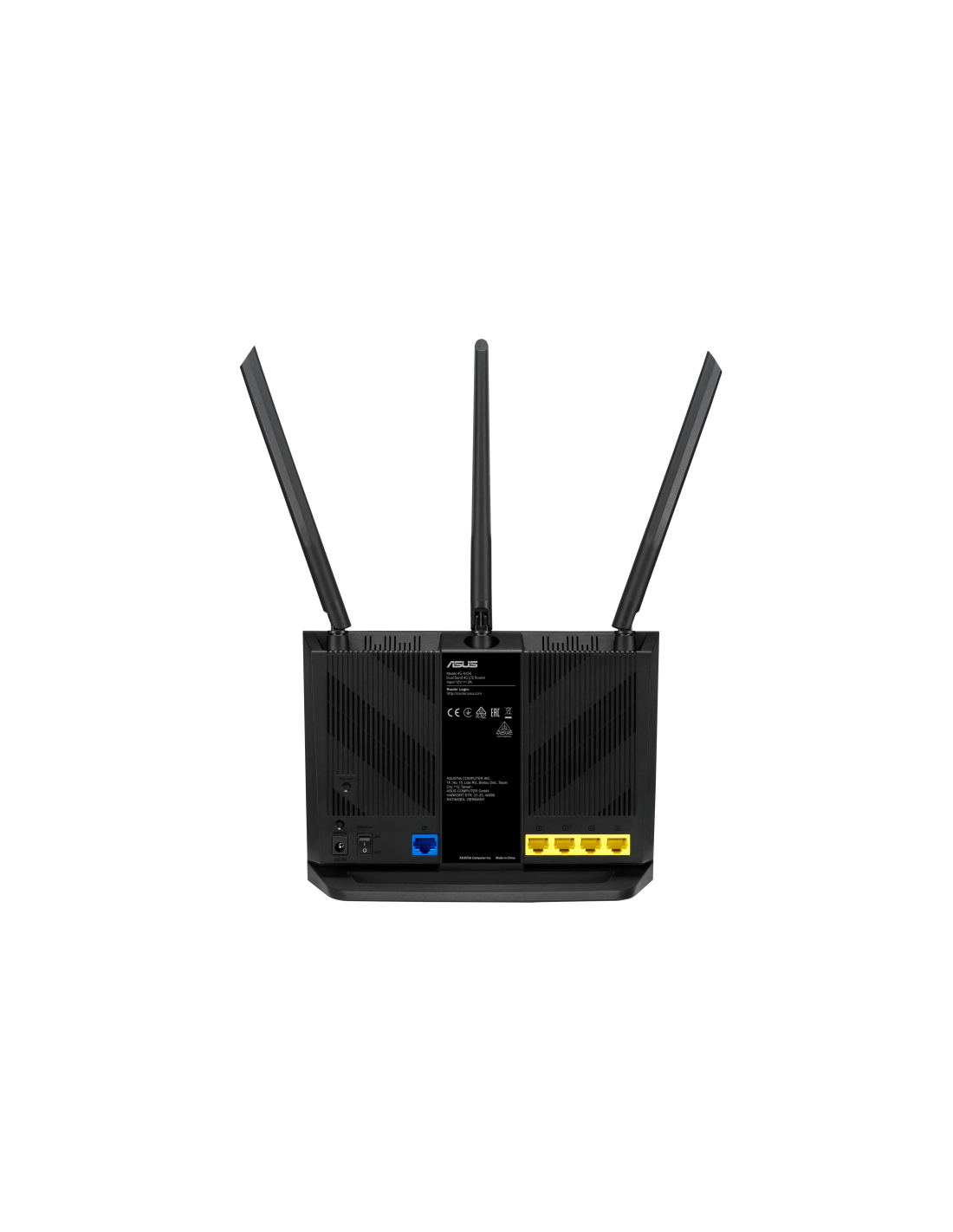 ASUS 4G-AX56. Tipo de conexión WAN: RJ-45. Banda Wi-Fi: Doble banda (2,4 GHz / 5 GHz), Estándar Wi-Fi: Wi-Fi 6 (802.11ax), Tasa de transferencia de datos WLAN (máx.): 1201 Mbit/s. Tipo de interfaz Ethernet LAN: Gigabit Ethernet, Estándares de red: IEEE 802.11a, IEEE 802.11b, IEEE 802.11g, IEEE 802.11n, Soporte VPN: VPN Client L2PT VPN Client OVPN VPN Client PPTP VPN Server OVPN VPN Server PPTP. Generación de red móvil: 4G, Estándares 3G: UMTS, Estándar 4G: LTE-FDD. Algoritmos de seguridad soportados: IPSec,