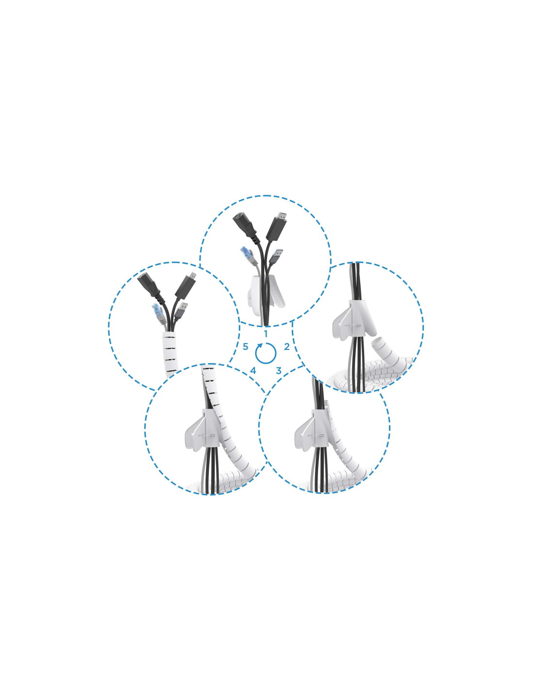 - Organizador de cables en espiral con capacidad de hasta 25mm de diámetro.