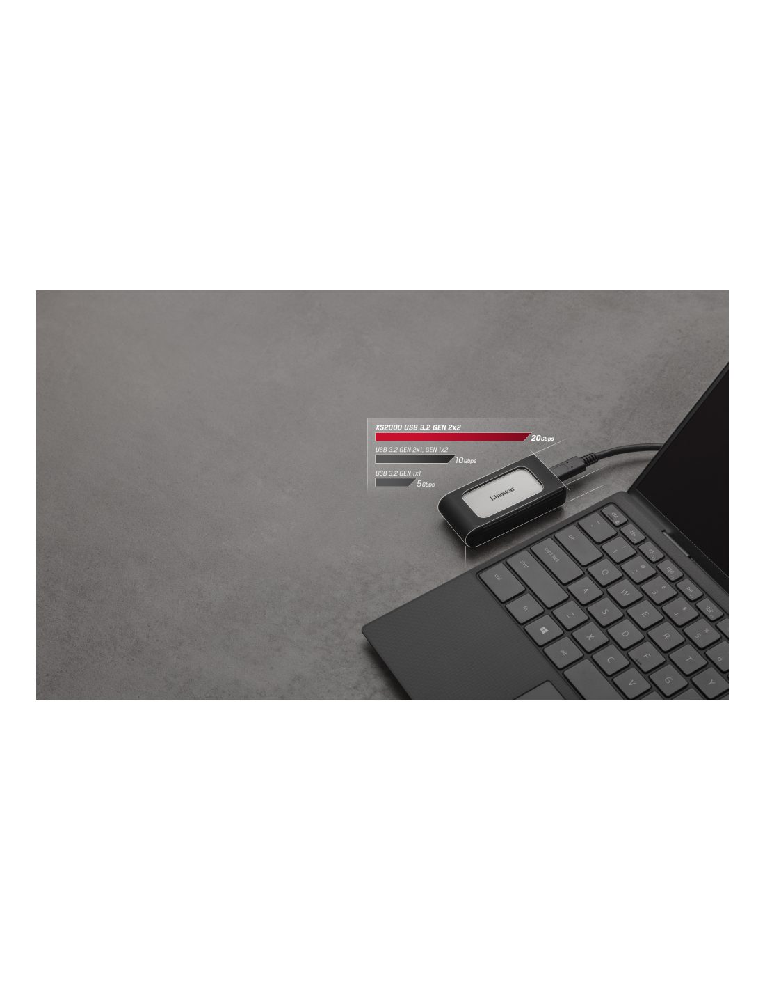 El SSD externa XS2000 de Kingston utiliza velocidades USB 3.2 Gen 2x2 para ofrecer un rendimiento de próxima generación en una unidad compacta y portátil. Con velocidades de transferencia ultrarrápidas de hasta 2.000 MB/s*, XS2000 ofrece una productividad mejorada con pocas interrupciones. XS2000 ofrece opciones de almacenamiento de alta velocidad para descargar y editar imágenes de alta resolución, vídeos 8K y documentos grandes en un abrir y cerrar de ojos. Con hasta 4 TB** de capacidad portátil, puedes almacenar tus juegos y archivos multimedia favoritos sin concesiones. La unidad está preparada para el futuro para mantenerse al día con las demandas de almacenamiento y es compatible con la mayoría de los dispositivos listos para usar. Funciona igual que un disco duro, pero almacena los datos mediante la tecnología flash NAND. Se conecta con USB Type-C®***, lo que permite a los creadores de contenido y jugadores acceder a sus datos desde cualquier lugar. Ya sea que vayas entre el trabajo, el juego y los proyectos que te apasionan, el XS2000 incluye una funda resistente extraíble para protección contra caídas de hasta 6 pies y clasificación IP55**** para resistir el agua y el polvo, lo que lo convierte en el compañero perfecto para sesiones de fotos o aventuras en el lugar.