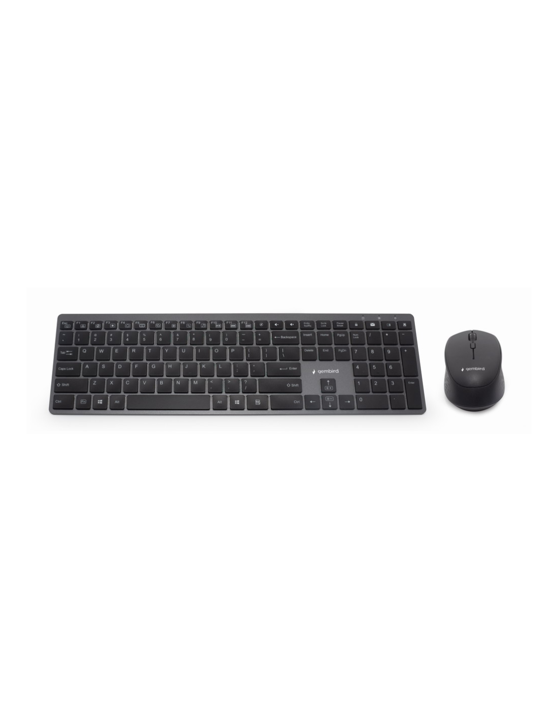 Gembird KBS-ECLIPSE-M500-PT. Formato del teclado: Completo (100%). Estilo de teclado: Derecho. Tecnología de conectividad: Inalámbrico, Interfaz del dispositivo: RF inalámbrico, Interruptor del teclado: Switch de tecla de tijera, Diseño de teclado: QWERTY, Teclado, cantidad de teclas: 112. Tipo de retroiluminación: LED. Uso recomendado: Universal. Color del producto: Gris. Ratón incluido