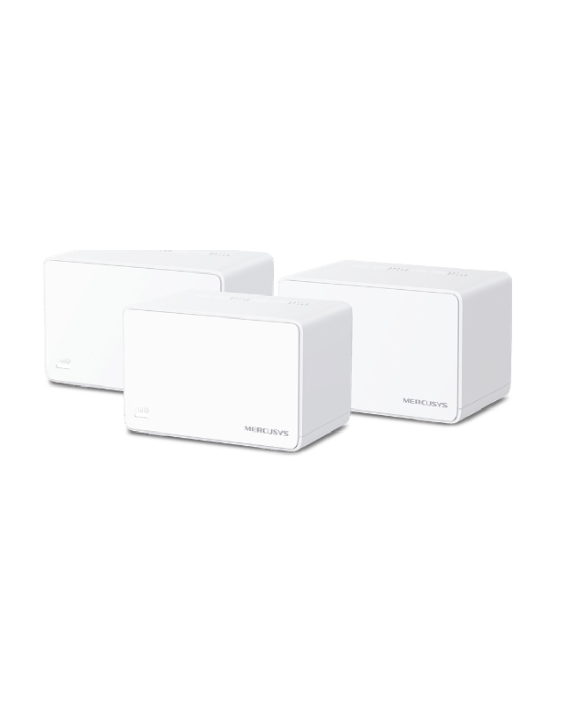 Mercusys Halo H80X (3-pack). Color del producto: Blanco, Tipo de antena: Interno, Tipo de producto: Sistema de malla. Banda Wi-Fi: Doble banda (2,4 GHz / 5 GHz), Estándar Wi-Fi: Wi-Fi 6 (802.11ax), Tasa de transferencia de datos WLAN (máx.): 3000 Mbit/s. Seguridad con cortafuegos: SPI Firewall. Ancho: 128 mm, Profundidad: 81 mm, Altura: 83,7 mm. Número de productos incluidos: 3 pieza(s), Número de unidades incluidas: 3 pieza(s)
