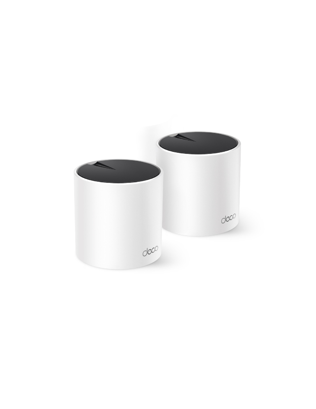 TP-Link DECO X55 (2-Pack). Color del producto: Blanco, Tipo de antena: Interno, Tipo de producto: Enrutador de malla. Banda Wi-Fi: Doble banda (2,4 GHz / 5 GHz), Estándar Wi-Fi: Wi-Fi 6 (802.11ax), Tasa de transferencia de datos WLAN (máx.): 3000 Mbit/s. Frecuencia del procesador: 1 GHz, Seguridad con cortafuegos: SPI Firewall, Potencia de transmisión (CE): 20 - 23 dbm. Certificados de conformidad: CE, RoHS, Certificación: CE, FCC, RoHS, RCM. Ancho: 110 mm, Profundidad: 110 mm, Altura: 114 mm