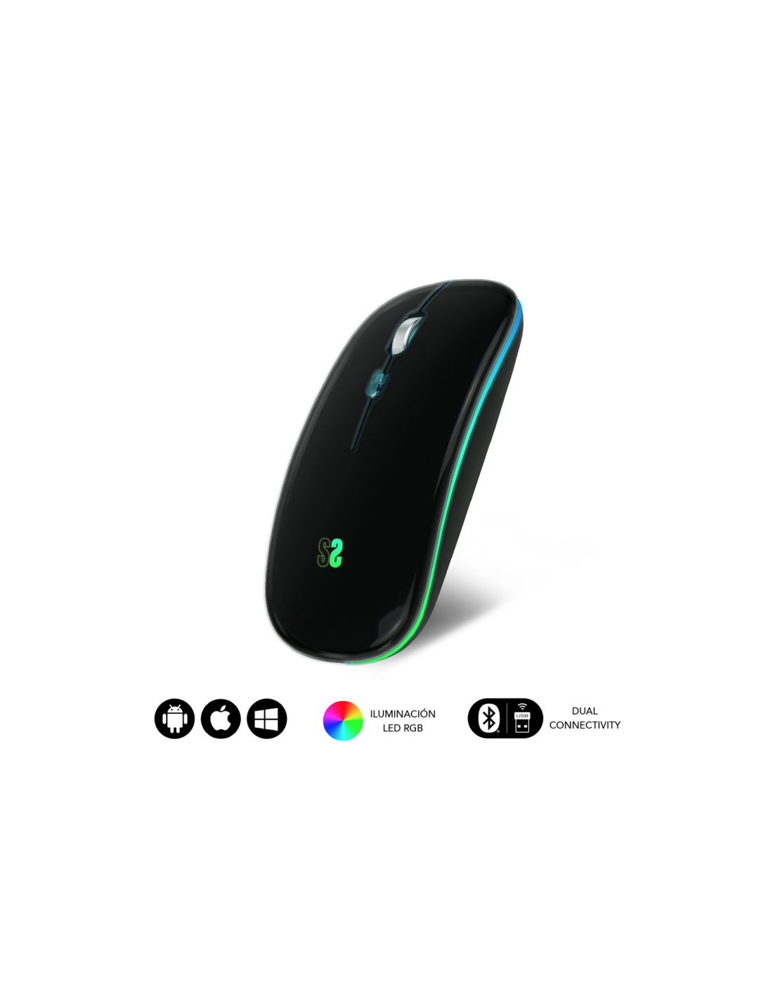 SUBBLIM Ratón Inalámbrico Bluetooth + RF RGB LED Dual Flat Mouse Black