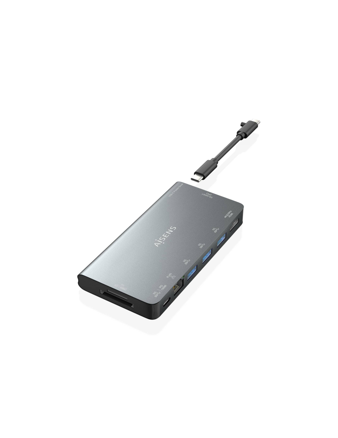 AISENS – USB-C Dock 8 en 1, USB-C a 1xHDMI, 1xRJ45, 3xUSB-A, 1xUSB-C Datos+PD, 1xSD, 1xMicro SD, Gris, 10cm