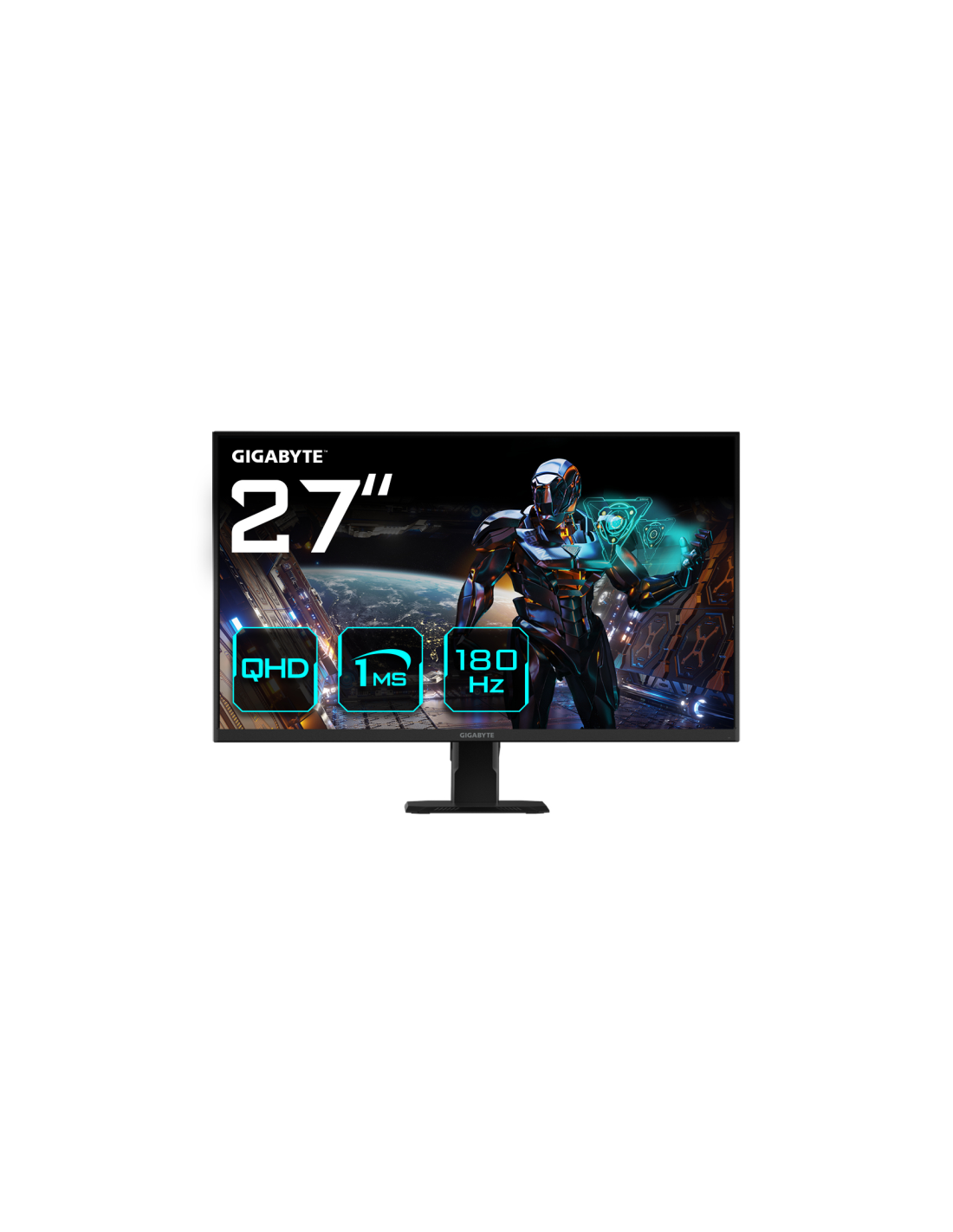 GIGABYTE GS27QA 27" Monitor de Juego QHD - 2560 x 1440 (QHD), 180Hz, 1ms, 300 cd/m2, FreeSync, HDR Ready, HDMI 2.0, Displayport 1.4. Diagonal de la pantalla: 68,6 cm (27"), Resolución de la pantalla: 2560 x 1440 Pixeles, Tipo HD: Quad HD, Tecnología de visualización: LCD, Superficie de la pantalla: Mate, Tiempo de respuesta: 1 ms, Relación de aspecto nativa: 16:9, Ángulo de visión, horizontal: 178°, Ángulo de visión, vertical: 178°. montaje VESA. Color del producto: Negro