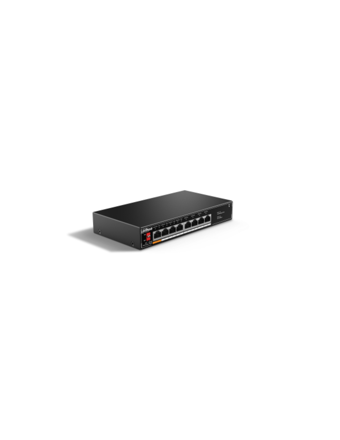 Dahua Technology PoE SF1008LP. Tipo de interruptor: No administrado, Capa del interruptor: L2. Puertos tipo básico de conmutación RJ-45 Ethernet: Fast Ethernet (10/100), Cantidad de puertos básicos de conmutación RJ-45 Ethernet: 8. Bidireccional completo (Full duplex). Tabla de direcciones MAC: 2048 entradas, Capacidad de conmutación: 1,8 Gbit/s. Estándares de red: IEEE 802.3, IEEE 802.3u, IEEE 802.3x. Voltaje de entrada DC: 48 - 57 V. Energía sobre Ethernet (PoE). Montaje de pared
