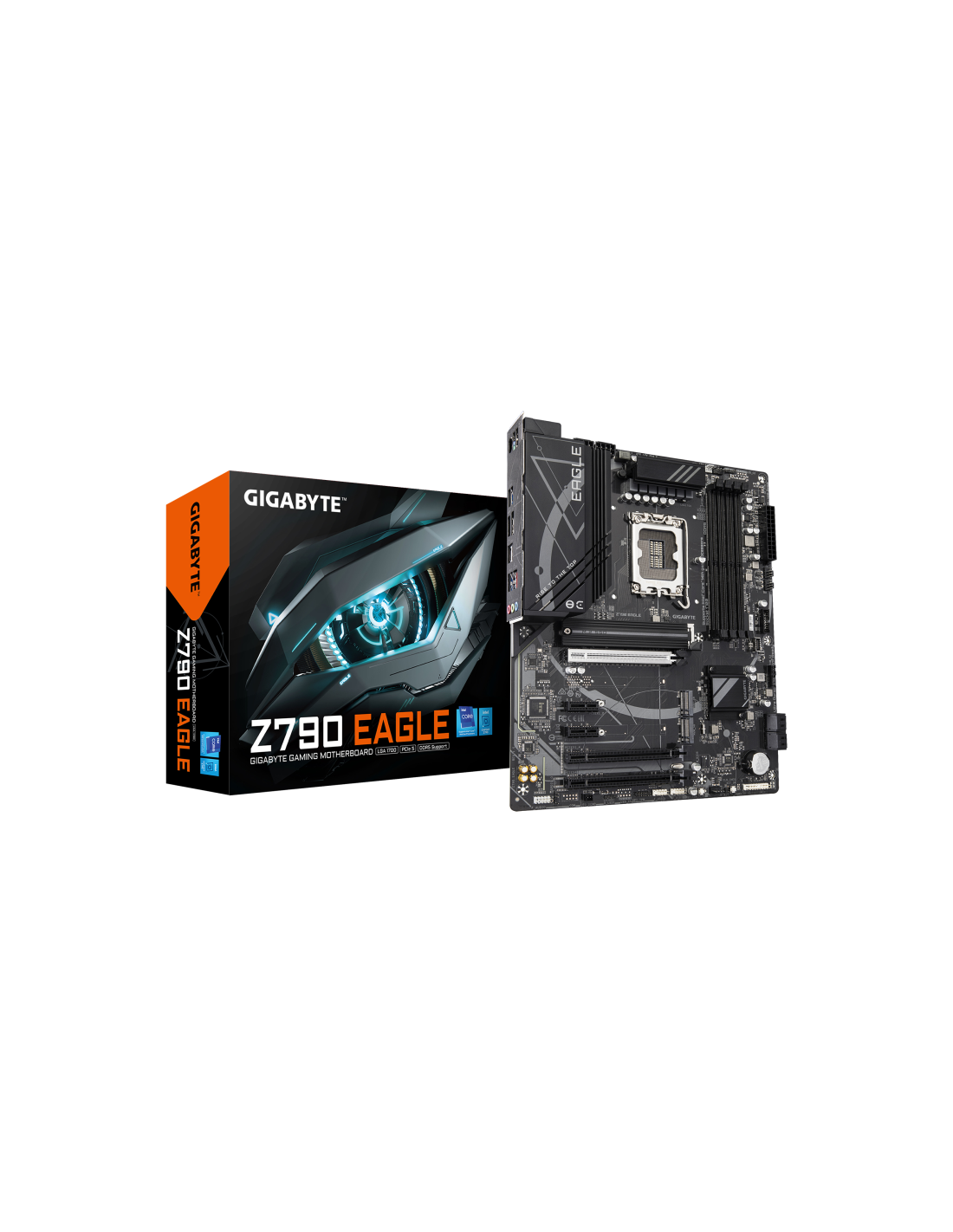 GIGABYTE Z790 EAGLE Placa base - Soporta CPUs Intel Core de 14ª generación, VRM de 12+1+1 fases, hasta 7600MHz DDR5 (OC), 3xPCIe 4.0 M.2, 2,5GbE LAN, USB 3.2 Gen 2. Fabricante de procesador: Intel, Socket de procesador: LGA 1700, Procesador compatible: Intel® Celeron®, Intel Core i3 12th Gen, Intel Core i3 13th Gen, Intel Core i3 14th Gen, Intel.... tipos de memoria compatibles: DDR5-SDRAM, Memoria interna máxima: 256 GB, Tipo de ranuras de memoria: DIMM. Interfaces de disco de almacenamiento soportados: M.