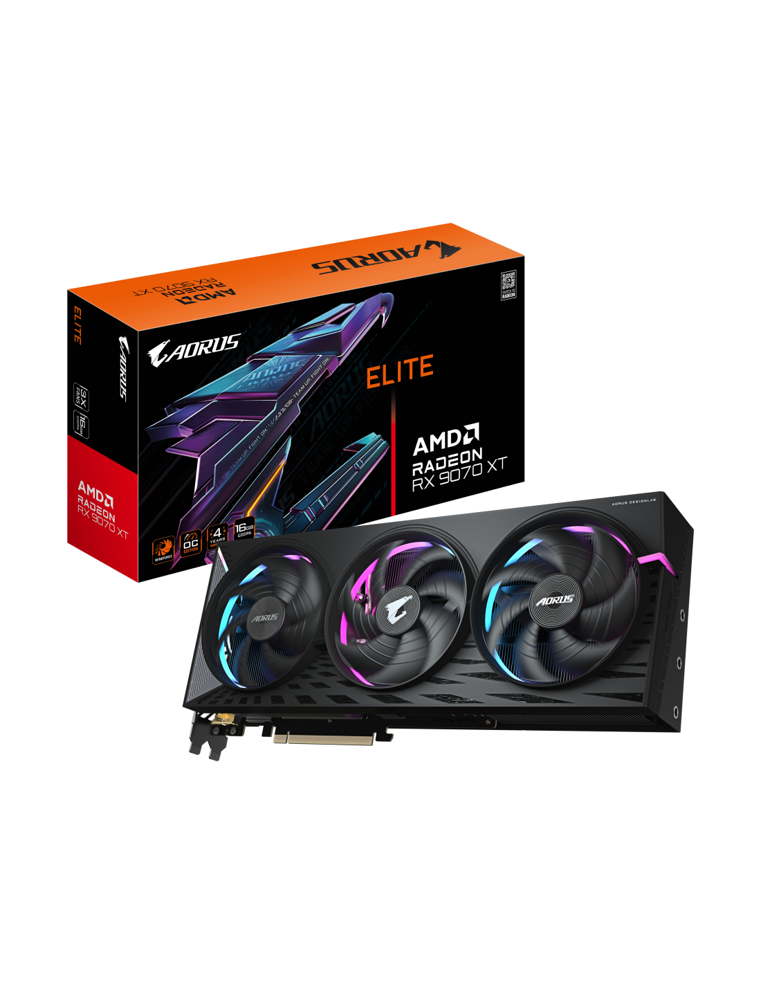 GIGABYTE AORUS Radeon RX 9070 XT ELITE 16G Tarjeta Gráfica - 16GB GDDR6, 256 bits, PCI-E 5.0, 3100 MHz Frecuencia Base, 2 x DisplayPort, 2 x HDMI, GV-R9070XTAORUS E-16GD. Familia de procesadores de gráficos: AMD, Procesador gráfico: Radeon RX 9070 XT. Capacidad memoria de adaptador gráfico: 16 GB, Tipo de memoria de adaptador gráfico: GDDR6, Ancho de datos: 256 bit, Velocidad de memoria del reloj: 20000 MHz. Máxima resolución: 7680 x 4320 Pixeles. Versión DirectX: 12.0, Versión OpenGL: 4.6. Tipo de interfaz